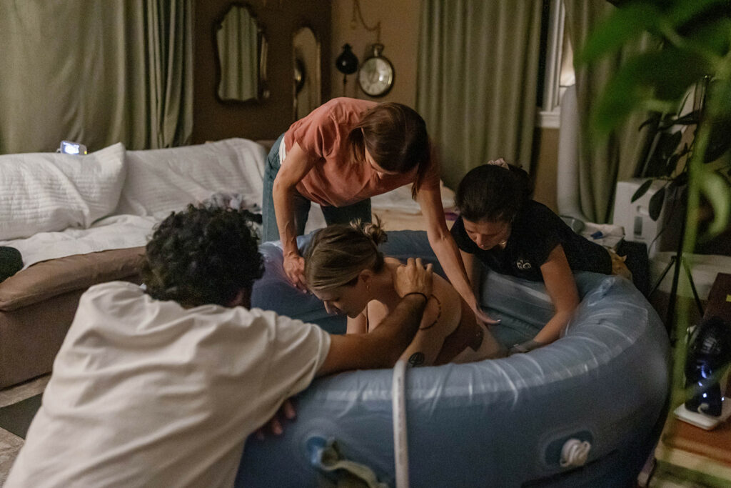 A Midwife Assistant works under the Midwife and helps with the clinical and logistical side of birth. They have a more hands-on role and assist with taking vital signs, newborn care, and setup/cleanup during labor and birth.